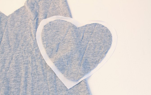 Cắt hình trái tim ở phần thân trước của chiếc áo. Kích thước trái tim lớn hay nhỏ tùy thuộc vào chiếc áo bạn cắt cho hợp lý. Để cắt trái tim cho đẹp, bạn nên cắt trái tim trên giấy làm mẫu sau đó mới cắt trên vải.