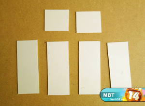 - Cắt giấy mô hình thành 4 hình chữ nhật kích thước 6 x 15cm và 2 hình vuông cỡ 6 x 6cm nữa nhé!