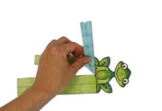 Dán phần dưới cùng của lò xo giấy vào lá sen, thế là bạn đã có được một chú ếch ngồi nhún nhảy trên lá sen với sự hỗ trợ của lò xo giấy rồi đấy.