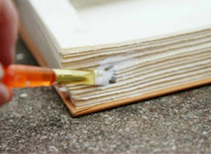 - Dùng bút lông quết đều keo sữa vào cả phía ngoài và phần trổ thủng bên trong để cố định các trang sách với nhau nhé!