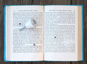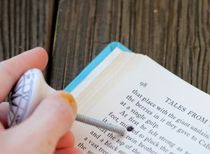 - Lật trang giữa của quyển sách, đánh dấu vị trí bạn đặt tay cầm.