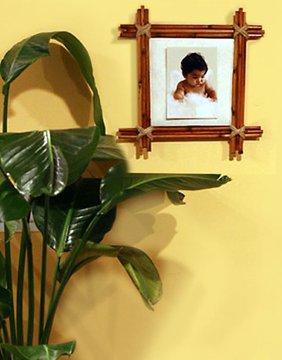 Khung ảnh bằng tre rất hợp để bạn bày gần cây xanh, có lẽ đó là vẻ hài hòa tự nhiên sẵn có của chất liệu tre, tạo nên một khoảng không gian đẹp cho căn phòng: