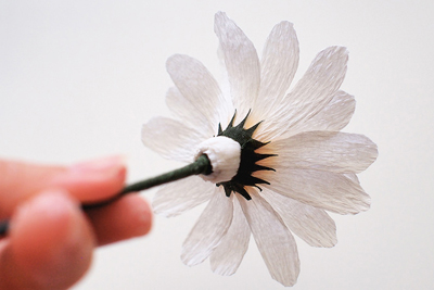- Sau khi dán cánh hoa bao quanh nhụy hoa, bông hoa của bạn trông sẽ như thế này nhé!