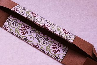 Sau đó bạn gấp phủ bìa hoa văn theo phong bì giấy nền, chú ý gấp khít với các nếp gấp của giấy nền.