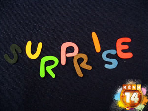 - Cắt chữ “surprise” bằng giấy đủ màu luôn cho sặc sỡ.