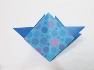 - Gấp 2 phần đuôi nhọn thừ của hình vuông chấm bi xuống dưới và vào bên trong.
